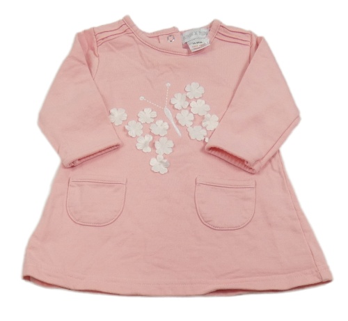 Růžové teplákové šaty s motýlkem a kapsami