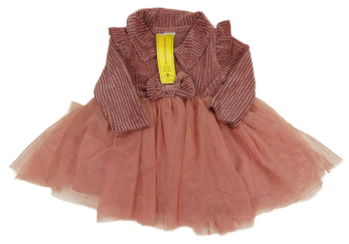 Nové - Starorůžové vzorované sametové šaty s mašlí a tylovou sukní Shein