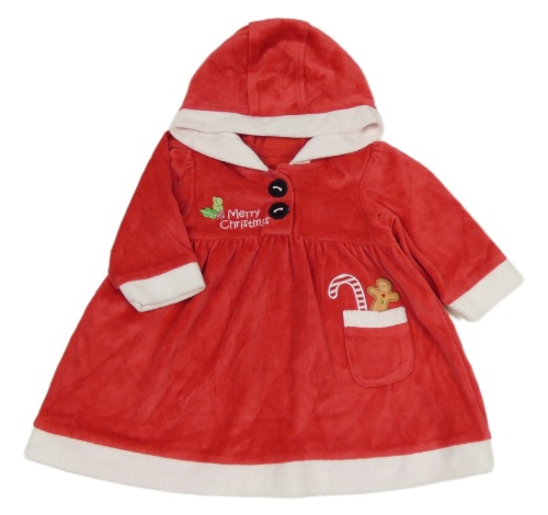 Červeno-bílé sametové vánoční šaty s kapucí George