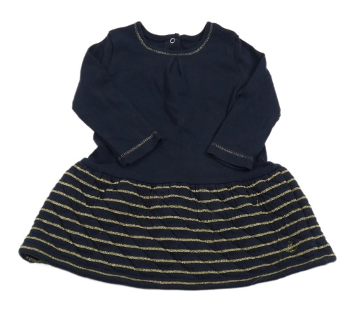 Tmavomodro-zlaté šaty s pruhy PETIT BATEAU