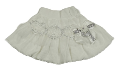 Bílá sametová sukně s krajkou a mašlí s květem