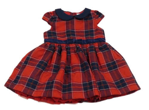 Červeno-tmavomodro-bílé kostkované šaty s límečkem a mašlí C&A