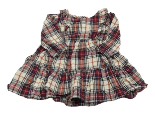 Béžovo-červeno-tmavomodré kostkované třpytivé šaty s volánky F&F