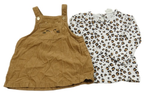 2set - Béžové manšestrové šaty s kočkou + bílé triko se vzorem H&M