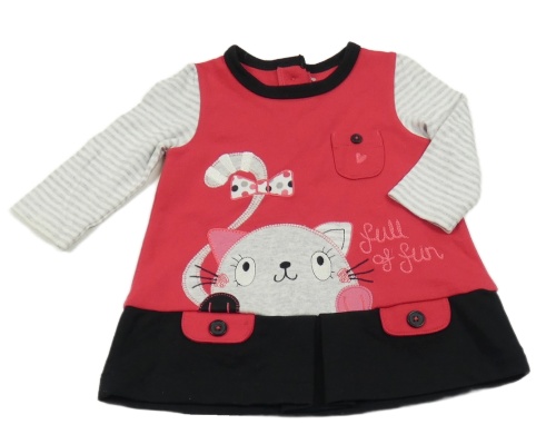 Růžovo-černo-šedo-bílé šaty s kočičkou a pruhovanými rukávy George