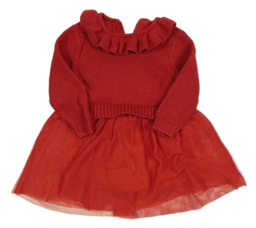 Červené třpytivé svetrovo/tylové šaty s límečkem M&S