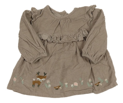 Světlehnědé manšestrové šaty se zvířátky a volánky Matalan