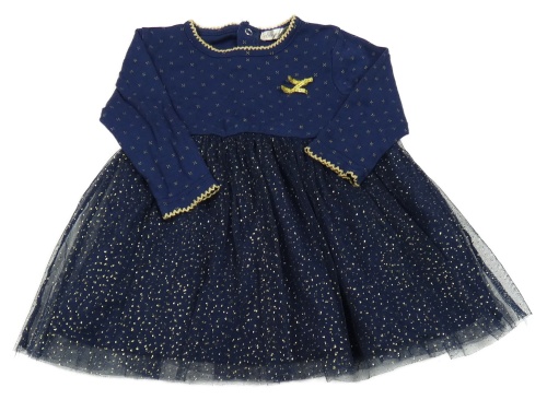 Tmavomodro-zlaté bavlněné šaty s tylovou sukní