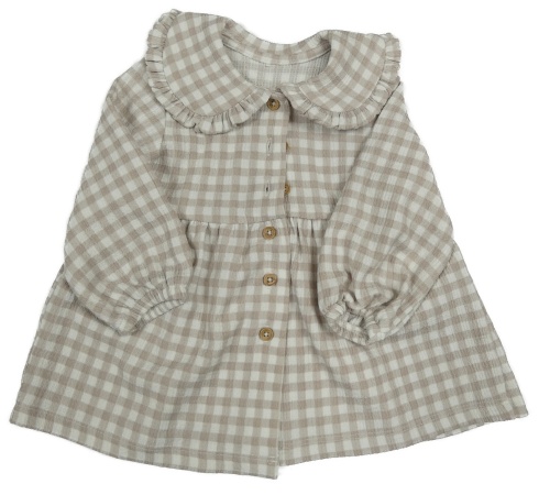 Světlehnědo-bílé kostkované mačkané propínací šaty s límečkem George