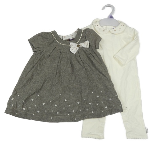 Nové - 2set - Šedé plátěné šaty s kytičkami + bílý overal Sergent Major