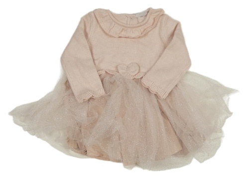 Světlerůžové svetrovo/ tylové šaty s mašlí a volánkem F&F