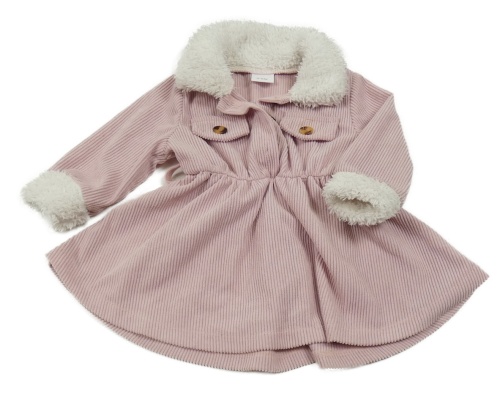 Růžové žebrované šaty s kožešinovými prvky