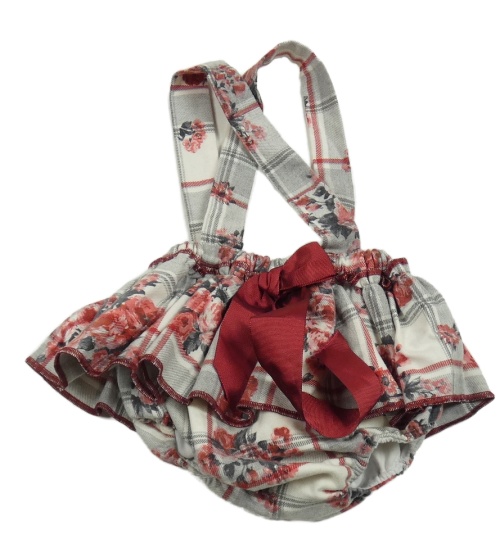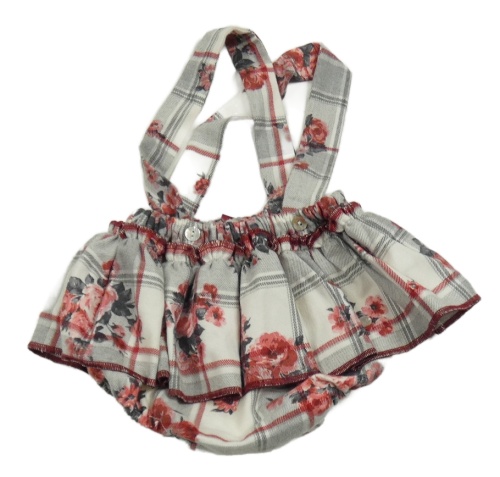 Šedo-bílo-vínová kostkovaná laclová sukně s všitým body a mašlí