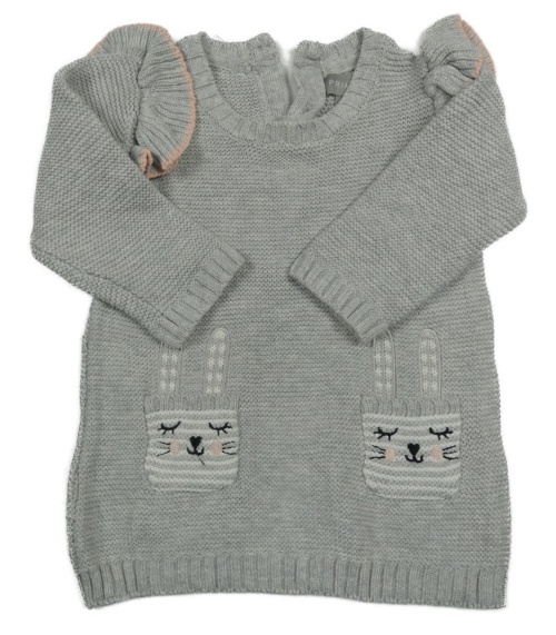 Šedé melírované svetrové šaty s kapsami s králíky a volánky Primark