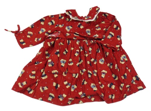 Červené manšestrové šaty s medvídky a límečky a páskem