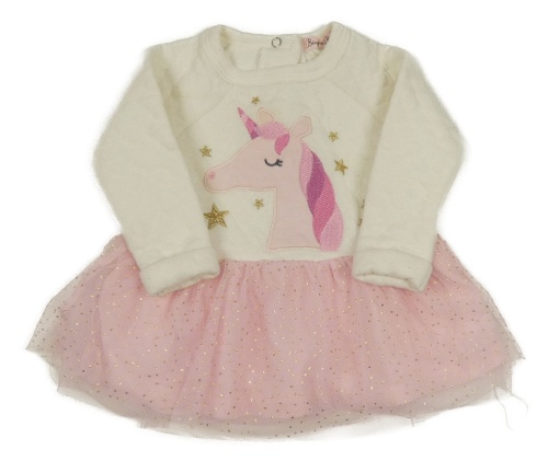 Bílo-růžové teplákové šaty s jednorožcem a tylovou sukní
