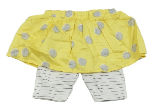 Žlutá puntíkatá lehká sukně s všitými pruhovaný capri legínami