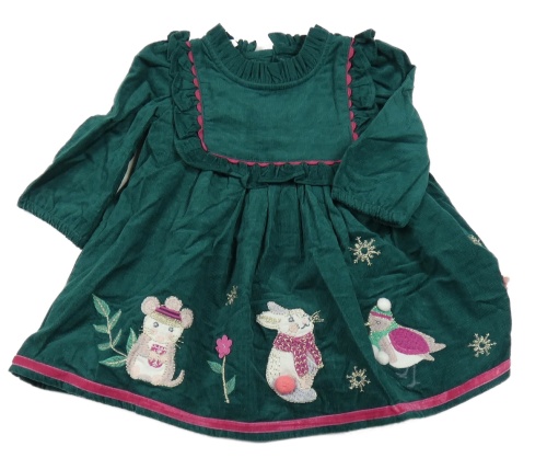Tmavozelené manšestrové šaty se zvířátky Monsoon