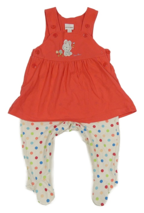 Růžové bavlněné šaty se zajíčkem a všitým overalem Bornino