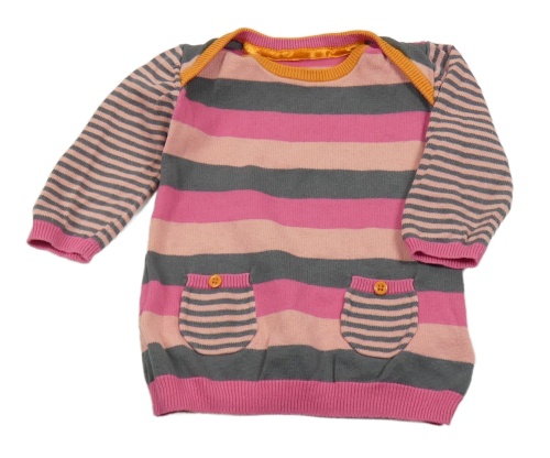 Tmavorůžovo/tmavošedo-pudrové pruhované pletené šaty M&S