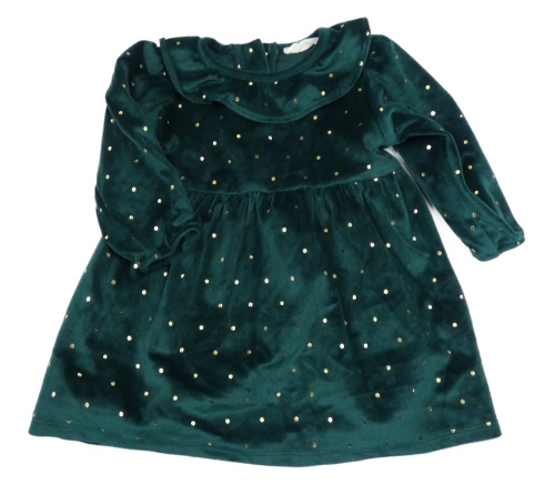 Srmaragdovo-zlaté puntíkaté plyšové šaty s volánkem PRIMARK