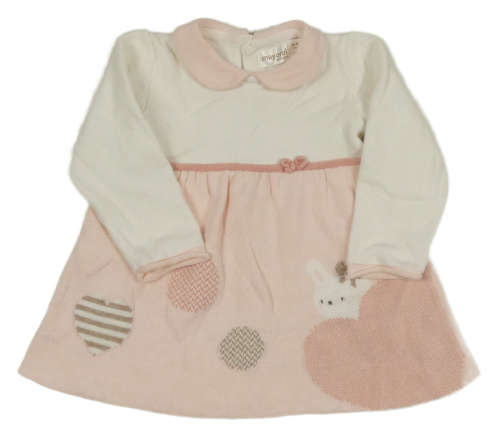 Bílo-růžové pletené šaty s králíčkem a límečkem Mayoral