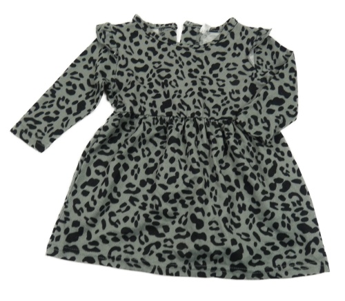 Šedo-černé leopardí úpletové šaty s volánky