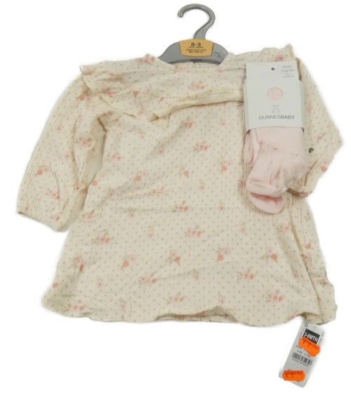 • Nové - 2set - Krémové puntíkaté šaty s květinami a volánem + světlerůžové žebrované punčocháče Dunnes