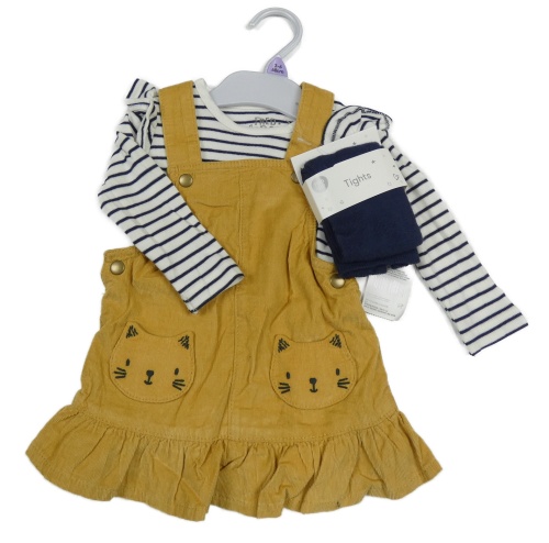Nové - 3set- hořčicové manšestrové šaty+ pruhované body+ tmavomodré punčocháče F&F