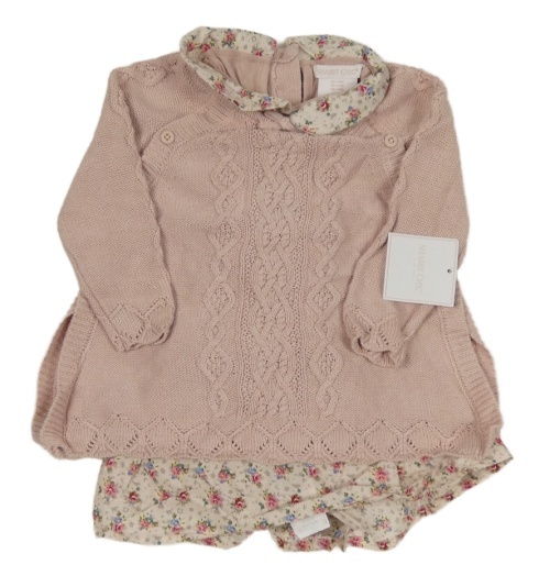 Pudrovo-světlepudrové pleteno/plátěné šaty se vzorem a kytičkami a límečkem SHABY CHIC