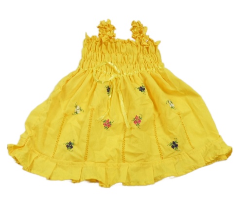 Žluté plátěné žabičkové šaty s kytičkami