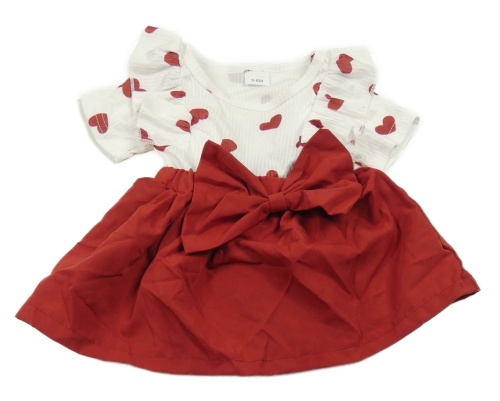 Bílo-vínové žebrované šaty se srdíčky a mašlí