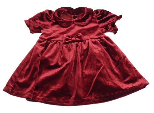 Vínové sametové šaty s mašlí a límečkem Matalan