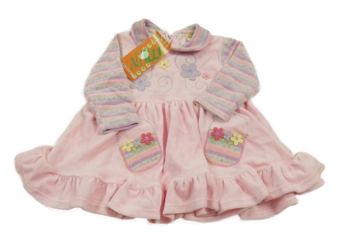 Nové - Světlerůžovo-šedo-lila sametové šaty s květy a pruhy