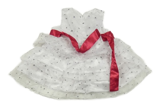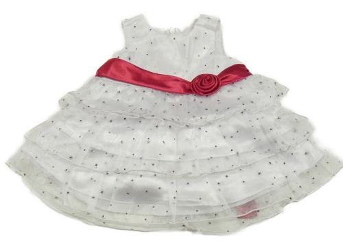 Bílé slavnostní vzorované tylové šaty s růžovým páskem s květem