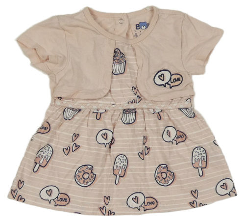 Světlerůžovo-bílé pruhované šaty s nanuky a donuty a bolérkem