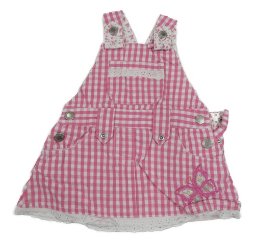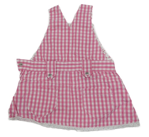 Růžovo-bílé kostkované plátěné laclové šaty Topolino