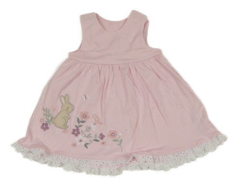 Růžové bavlněné šaty s králíkem a květy Nutmeg