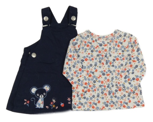 2Set - Tmavomodré riflové šaty s myškou + bílé květované triko