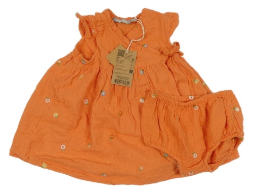 Nové - oranžové plátěné šaty s květinami
