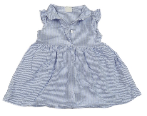 Modro-bílé pruhované krepové šaty s volánky a límečkem H&M