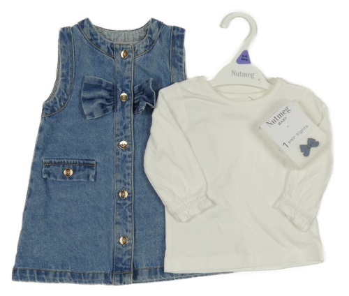 Nové - 3 set - modré riflové šaty + bílé triko + bílé punčocháče Nutmeg