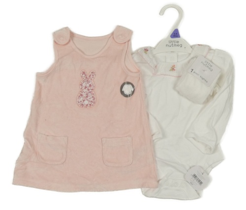 Nové - 3set - Světlerůžové sametové šaty se zajíčkem + bílé body + punčocháče Nutmeg