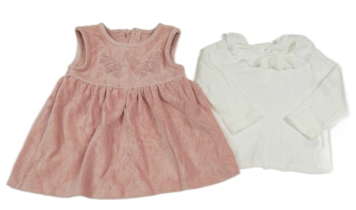 2set - Růžové sametové šaty s květy + bílé vzorované triko s volánkem Dunnes Stores
