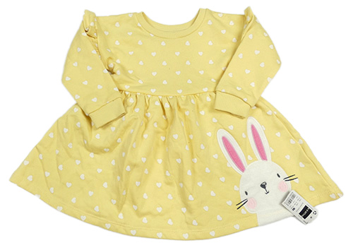 Nové - žluté teplákové šaty se zajíčkem a srdíčky a volánky St. Bernard