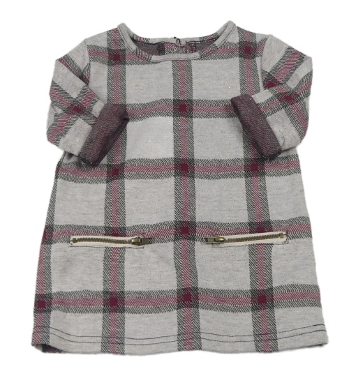 Světlešedofialovo-černo-vínové kostkované melírované úpletové šaty se zipy PRIMARK