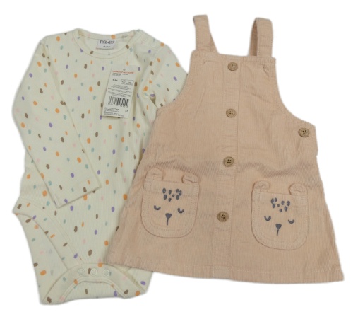 • Nové - 2Set - Světlepudrové manšestrové šaty s čumáky + smetanovo/barevné vzorované žebrované body F&F