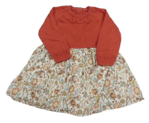 Červeno-bílé pleteno/plátěné šaty s kytičkami Tu