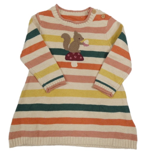 Smetanovo-barevné pruhované svetrové šaty s veverkou Nutmeg