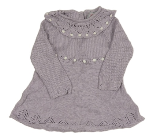 Levandulové svetrové šaty s bambulkami a límečkem Tahari